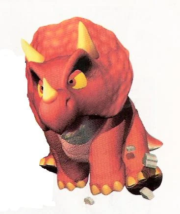 According to the Rareware scribes, Tricky was originally intended to be the same character as Tricky the Triceratops, a boss from the game. However, the two characters are generally considered to be separate. Besides that, Tricky from Diddy Kong Racing was, of course, a triceratops, whereas Tricky from Dinosaur Planet lacks the trio of facial horns to categorize him as such (because his father and mother both seem to be based off of Centrosaurus [A cerotopsian with one "nose" horn rather than the trio of facial horns] thus Tricky is also probably more Centrosaurus then Triceratops).